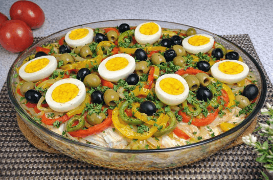 Ela sempre fez questão de usar ingredientes simples e econômicos, isso nunca diminuiu o sabor de suas receitas, hoje faço essa receita de Bacalhoada de Forno Fácil sempre, todo mundo é apaixonado por ela. Fiz alguns ajustes para deixar mais saborosa mas sem perder a originalidade, é receita padrão da roça, faça e se prepare para receber uma chuva de elogios.