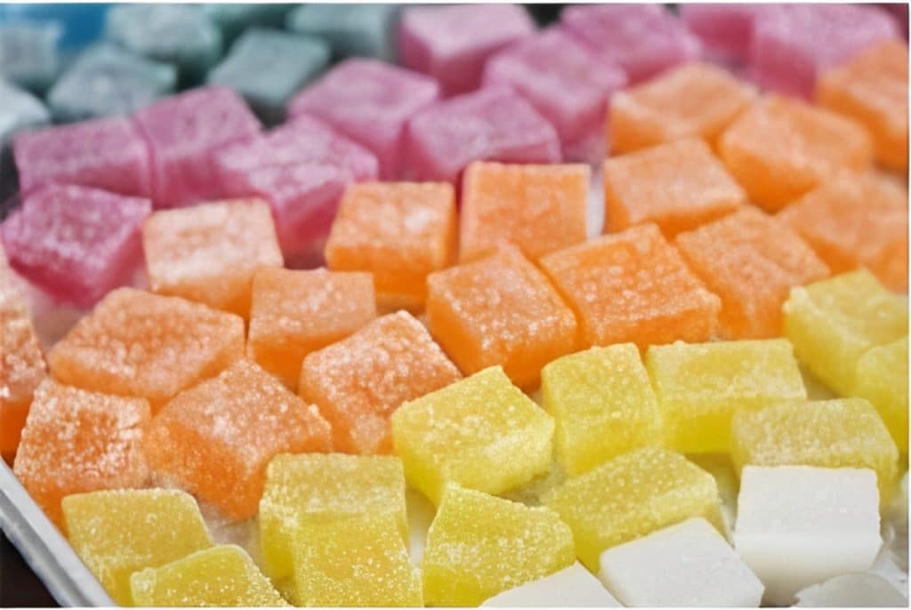 - Envolva os quadradinhos no açúcar cristal e já pode servir a deliciosa bala de gelatina!