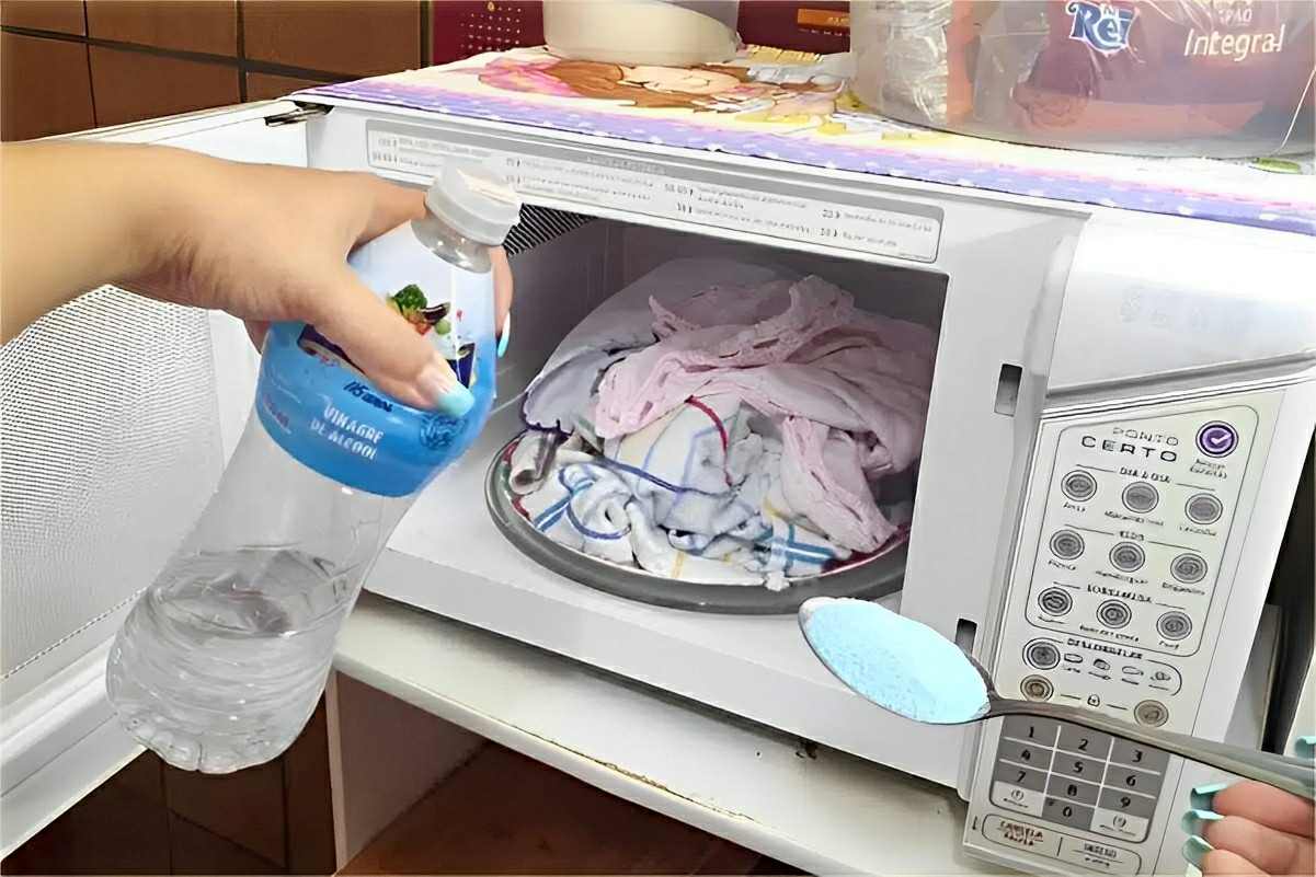 Para fazer essa misturinha caseira para lavar panos de prato vamos precisar de apenas 3 produtos que provavelmente você tem em casa. São eles bicarbonato de sódio, vinagre de álcool branco, e sabão em pó. Nessa misturinha caseira para lavar panos de prato, o vinagre age como o potente desengordurante e desinfetante que é, enquanto o bicarbonato de sódio promove o branqueamento e potencializa a ação do sabão em pó. Além disso, a água fervente e o tempo de aquecimento da mistura no microondas fará com que a limpeza seja ainda mais potente!