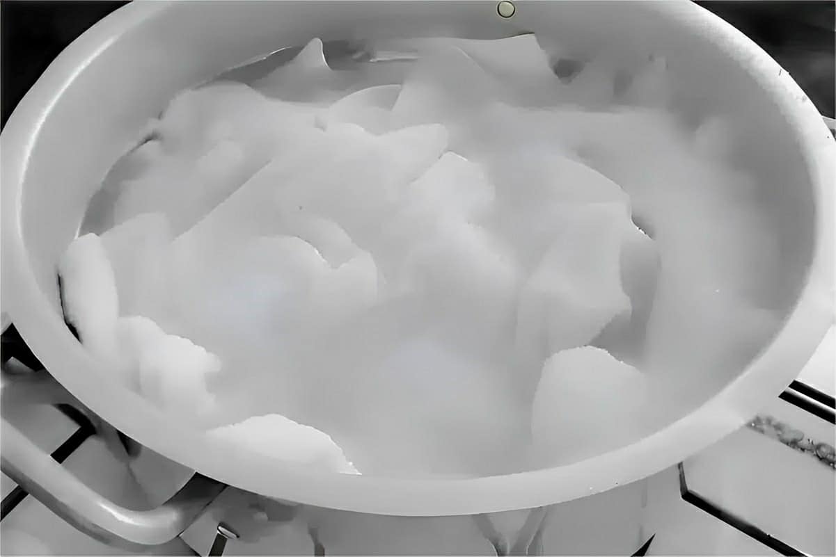- Desligue o fogo assim que a mistura começar a ferver, pois os vapores do sabão em pó podem fazer mal se respirados.