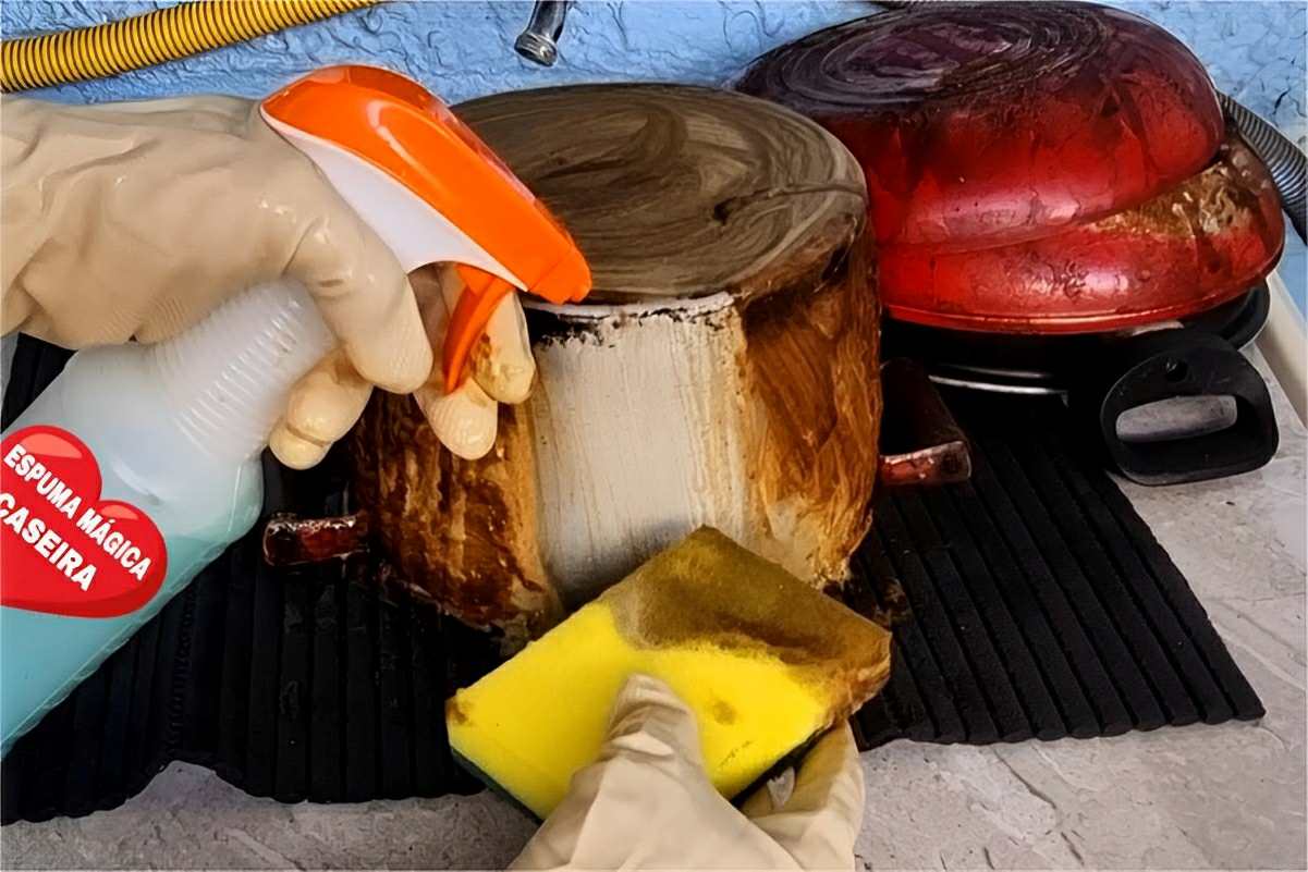 - Borrife o removedor de gorduras na panela ou utensílio seco, deixando agir por cerca de 5 minutos.
