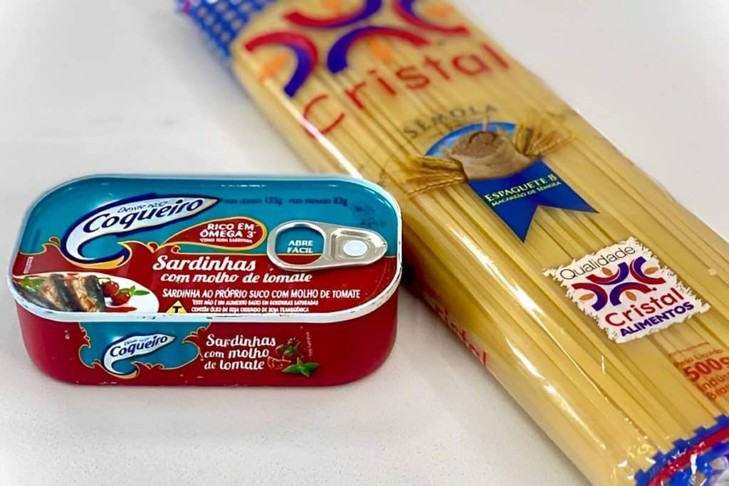 Ingredientes da receita de macarrão com sardinha